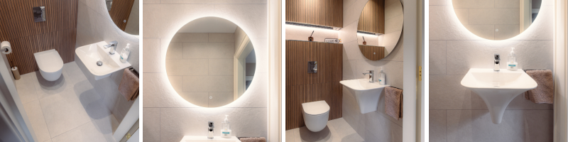 Small but perfectly formed, the downstairs toilet was a challenge due to limited space. Their solution? The Grace wall-hung sink.