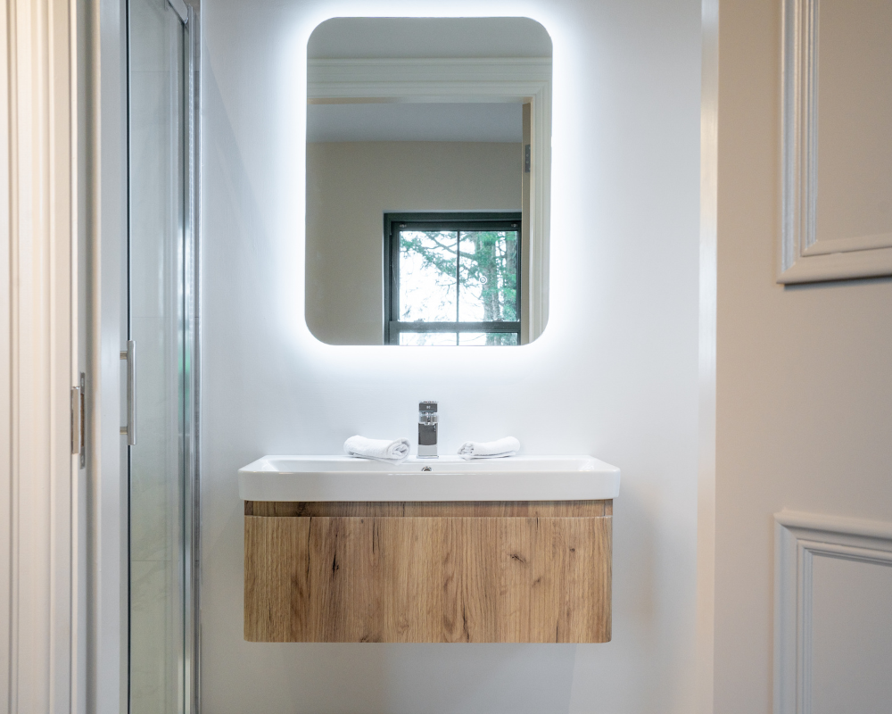 - Backlit mirrors for a soft, contemporary glow