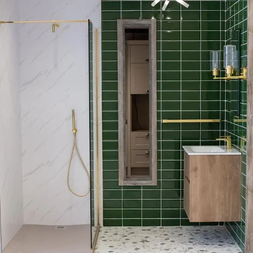 Large format porcelain tiles are a smart choice for creating a bathroom that feels sleek and seamless. With fewer grout lines, they give the impression of a larger, more open space while keeping cleaning simple and low-maintenance. These tiles are especially effective in walk-in showers and open-plan layouts, where a continuous flow of surface adds to the modern, spa-like feel. To explore more ways to use tiles creatively in your home, take a look at our guide to bathroom tiling ideas