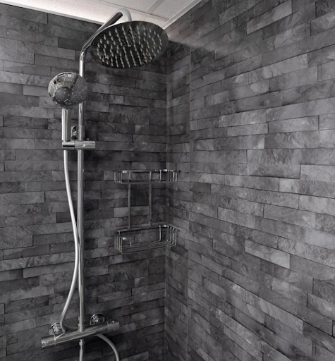 For a more dramatic and textured finish, slate-effect wall panels offer a bold alternative to traditional tiles. Their matt surface and stone-like appearance make them perfect for creating an industrial-style bathroom.