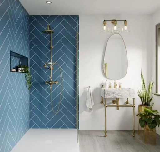 Herringbone patterns are perfect for adding movement and visual interest to a bathroom. When used in wall panelling, this layout creates a modern feature that instantly draws the eye.