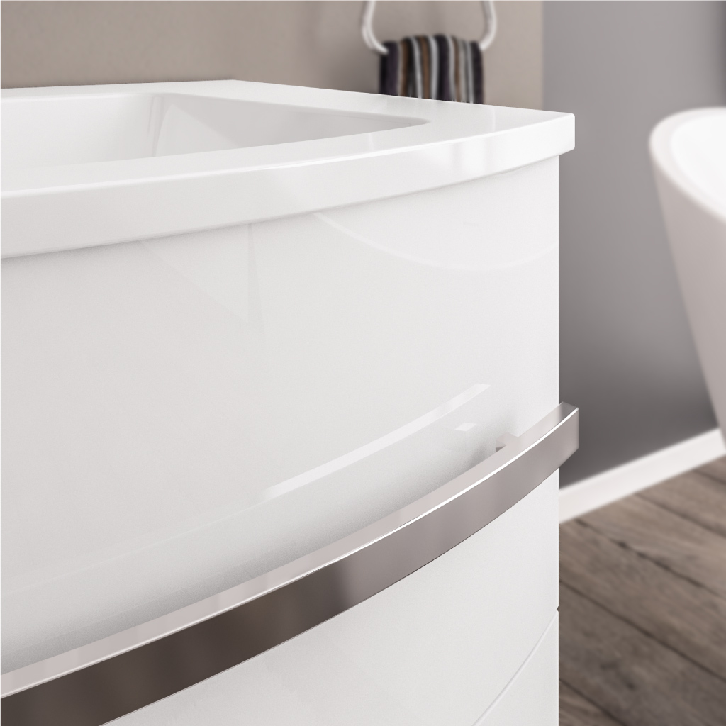 The Centa Curved Handle in Chrome offers a sleek and contemporary finishing touch to modern furniture or bathroom units. Its elegant curved profile and polished chrome finish create a refined, high-end look while ensuring practicality and comfort. Designed with precision and durability in mind, this handle is both stylish and functional, perfectly complementing any glossy or textured surface for a sophisticated modern aesthetic.