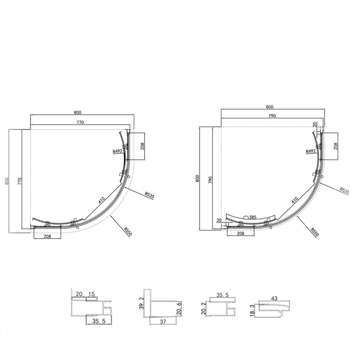 | Shower Enclosure Max Width | 790mm |