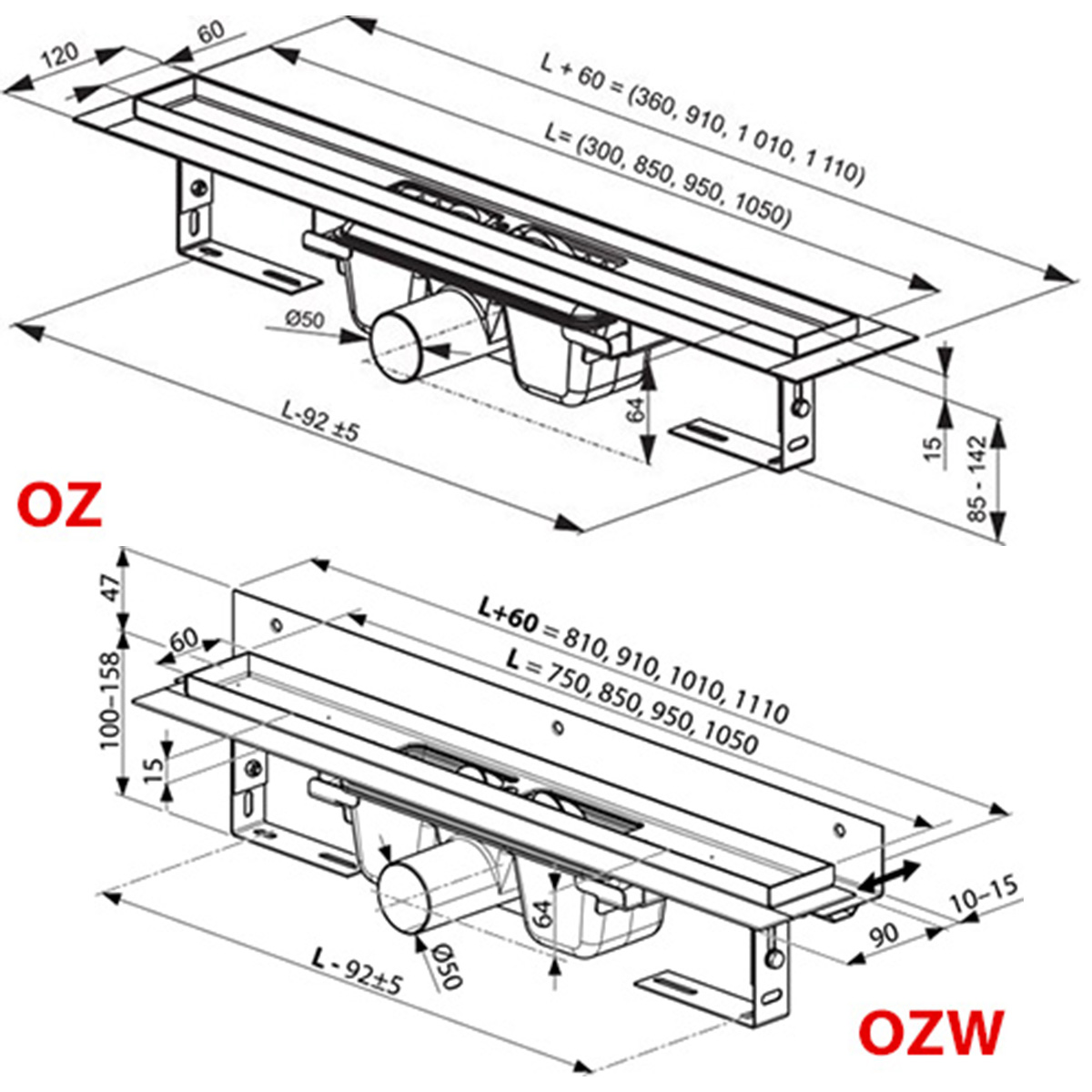 Ravak 750mm Runway Shower Wetroom Floor Waste Gully
