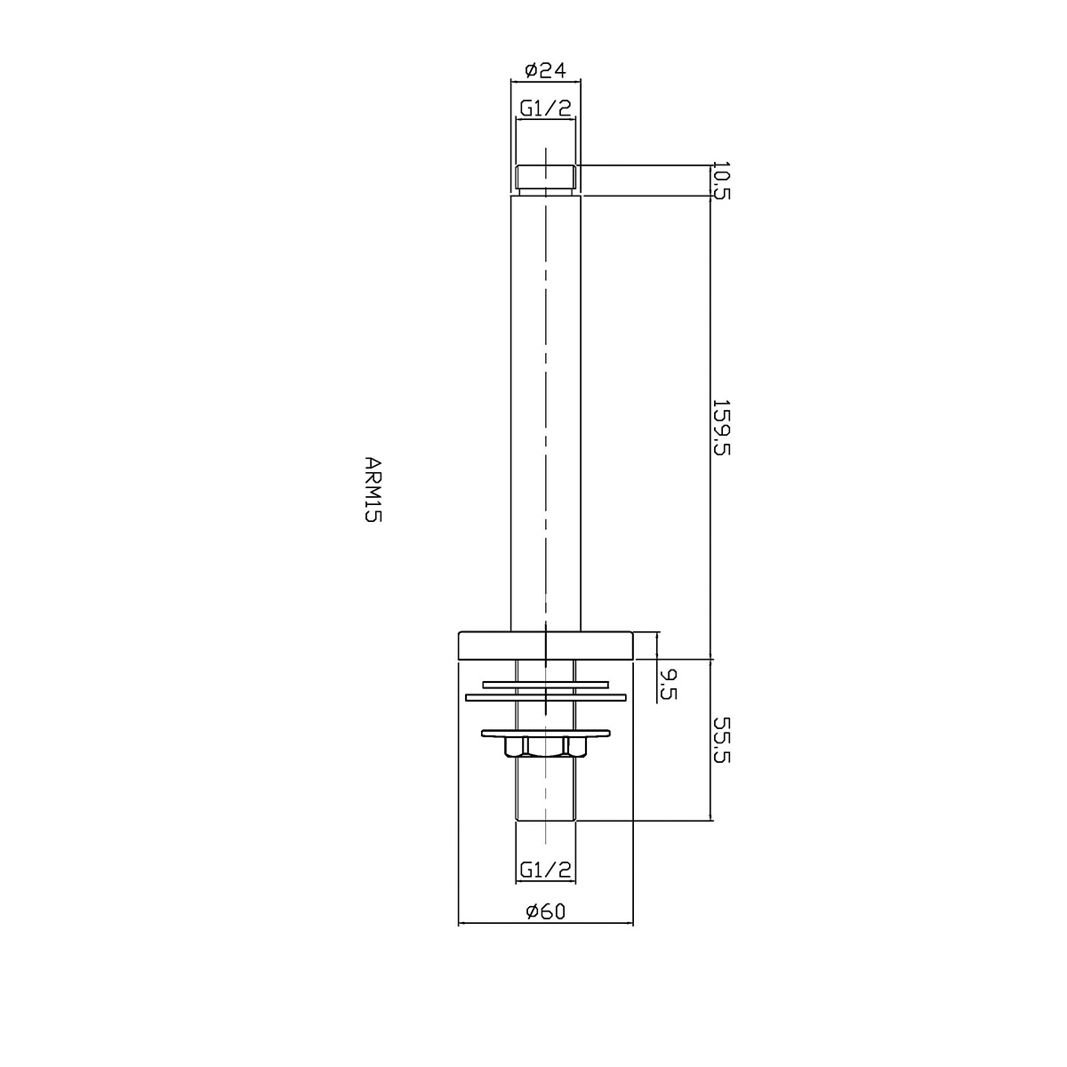 Nuie Fixed Shower Head Ceiling-Mounted Arm - Matt