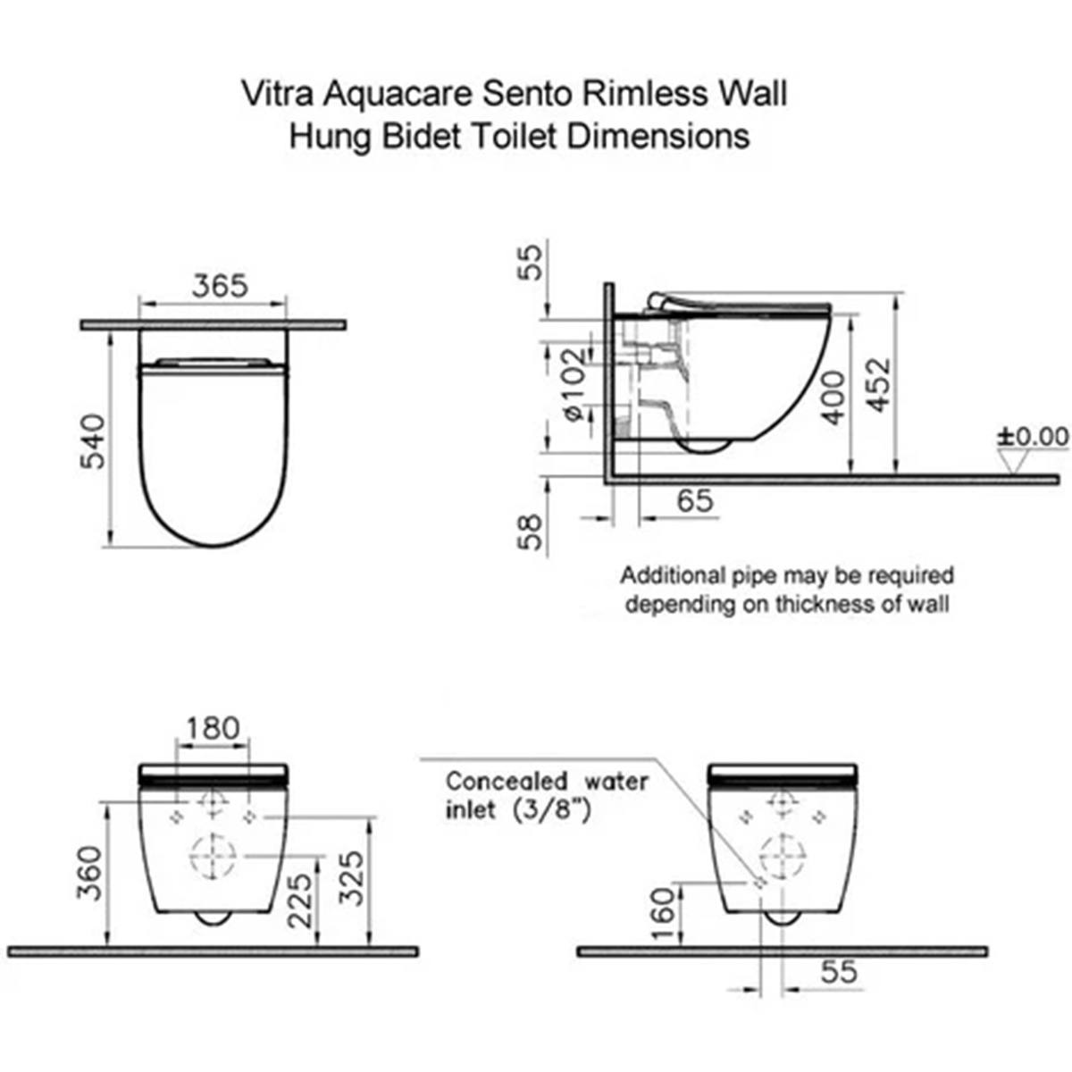 Vitra Sento Aquacare Rimex Wall Hung Toilet Pan Set
