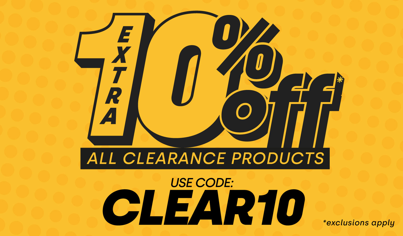 CLEAR10 - extra 10% off ALL clearance items