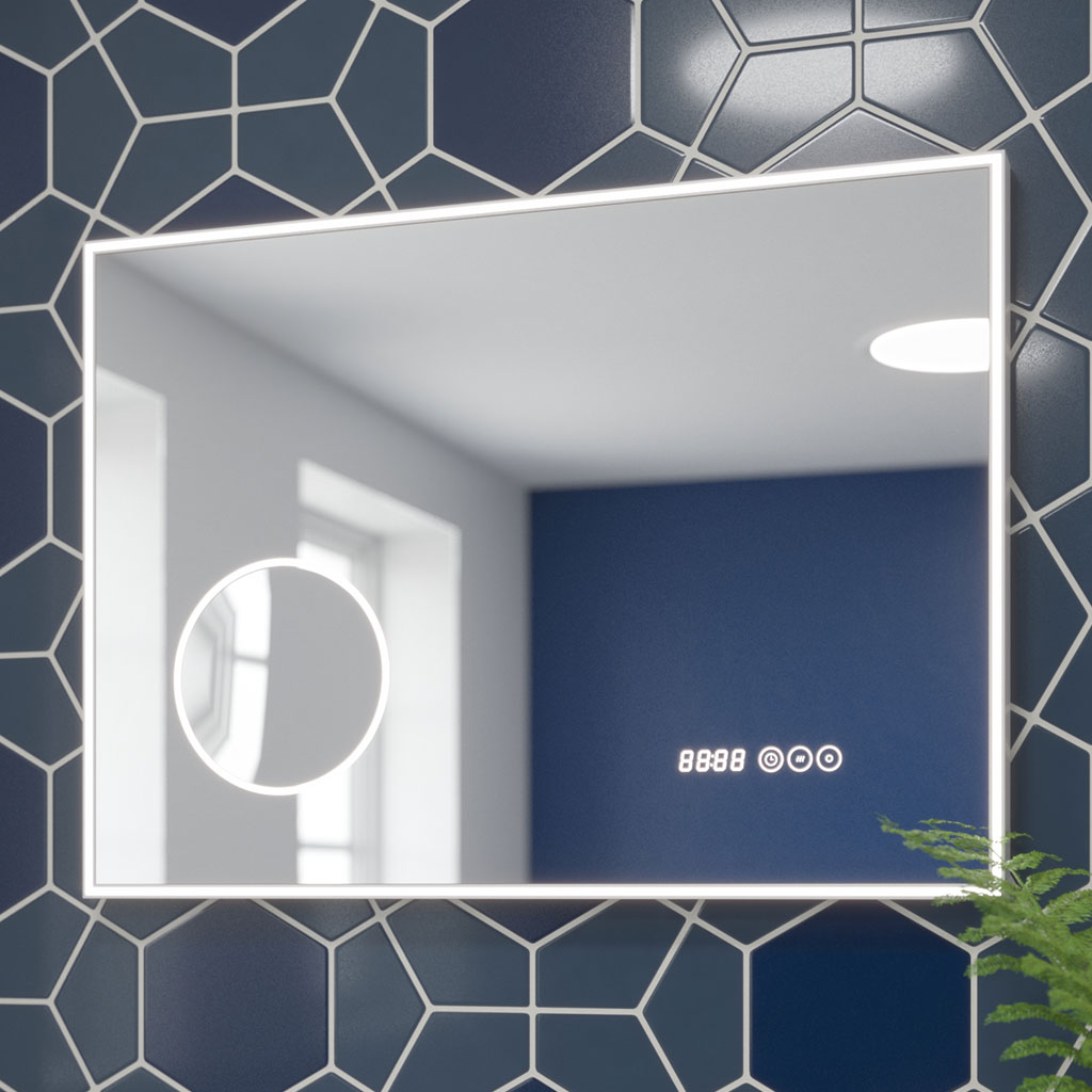 The Fabriano 700 x 500mm LED Landscape Mirror with White LED lighting offers the perfect blend of style and smart functionality. Designed for modern bathrooms, it features built-in LED lights and a touch sensor for easy operation. The integrated digital clock keeps you on schedule, while the 6x magnifying mirror ensures precision. With a built-in demister and IP54 rating, the Fabriano Mirror delivers clarity, convenience, and contemporary elegance.