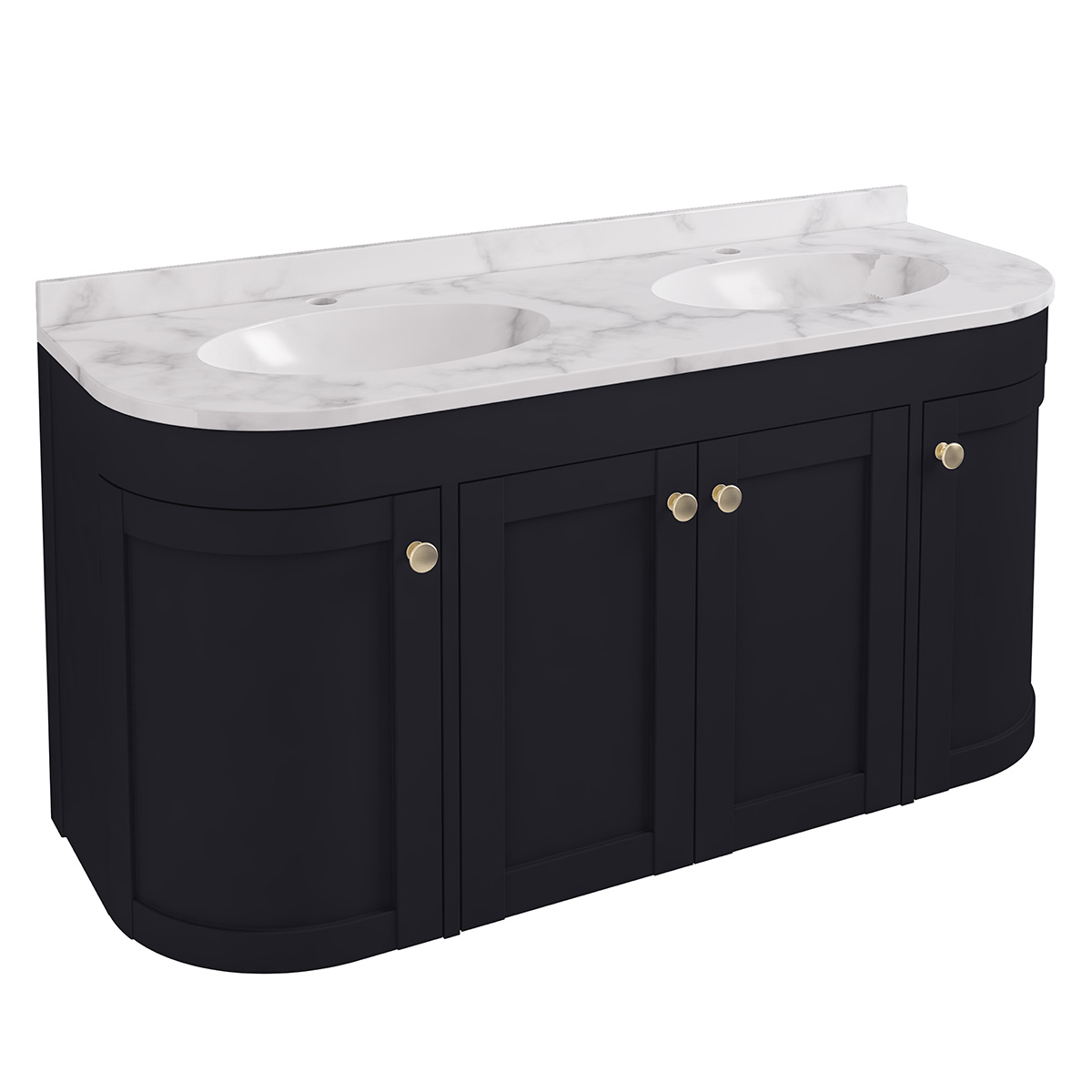 Hardwick 1200mm Wall Hung Vanity Unit, Quartz Worktop and Double Basin - Matt Anthracite