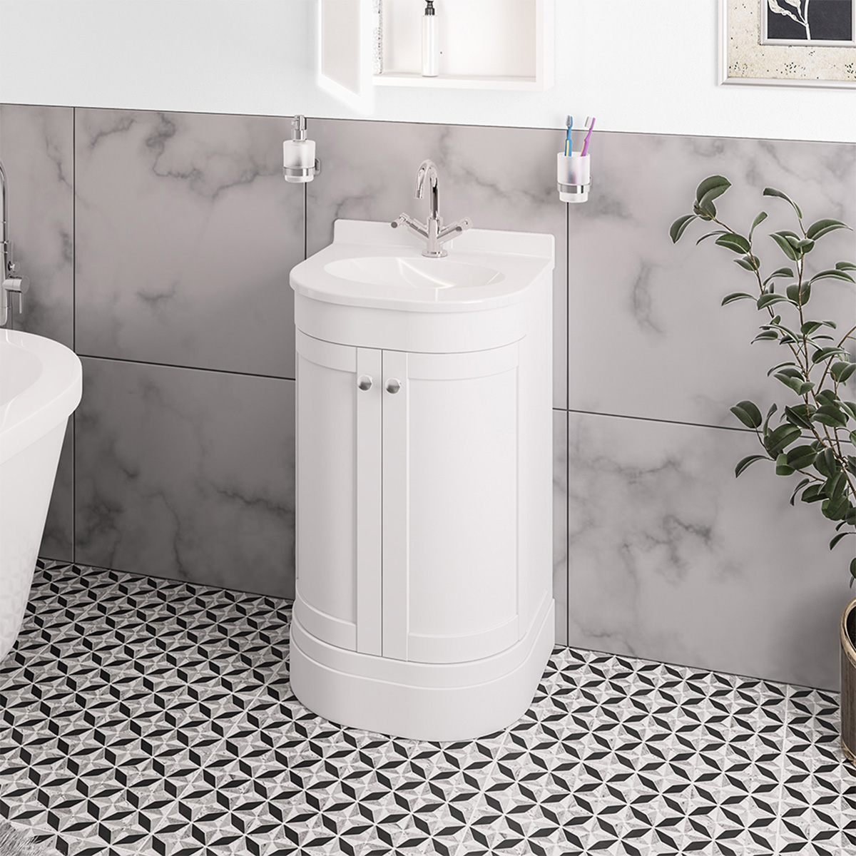 The Hardwick 600mm Traditional Vanity Unit, Quartz Worktop and Basin Matt White combines timeless craftsmanship with everyday functionality. This freestanding unit features a beautifully detailed traditional design finished in elegant matt white. It comes complete with a durable quartz worktop and matching basin, creating a refined centrepiece for classic or modern bathrooms. With two soft close doors providing ample concealed storage, this unit offers the perfect balance of practicality, quality and enduring style.