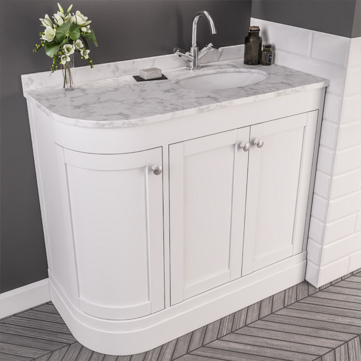 Hardwick 900mm Traditional Corner Vanity Unit, Quartz Worktop and Basin Right Hand - Matt White