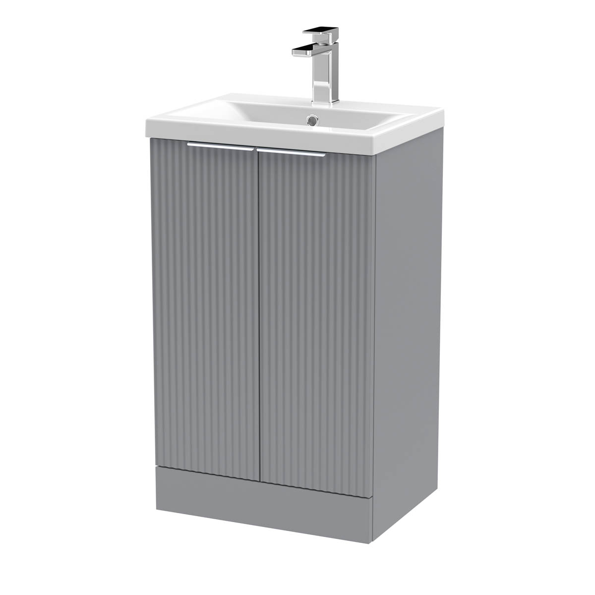 Hudson Reed Fluted 500mm Floorstanding 2 Door Vanity Unit & Basin - Satin Grey Grey