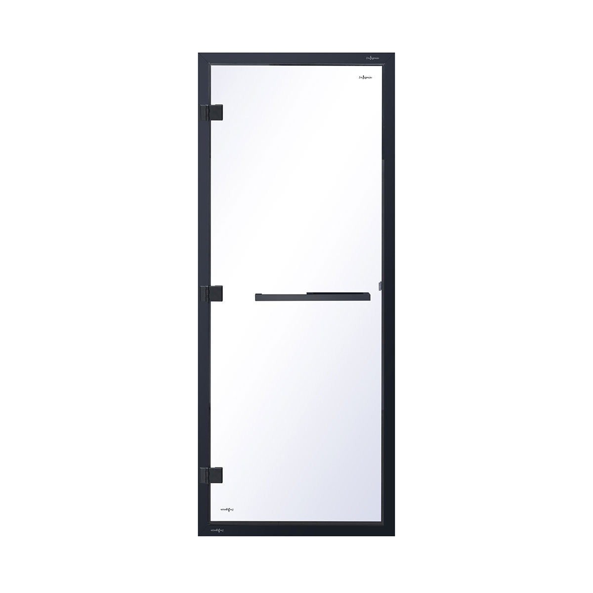Crafted specifically for steam room use, this reversible 6mm tempered glass door stands an impressive 2000mm tall and 780mm wide. It boasts a sturdy 40mm thick frame, durable tempered glass for long-lasting strength, and a stylish matte black perimeter for a refined finish. Complete with matching hinges, a reinforced handle, and a full-surround magnetic seal, it ensures both style and functionality.