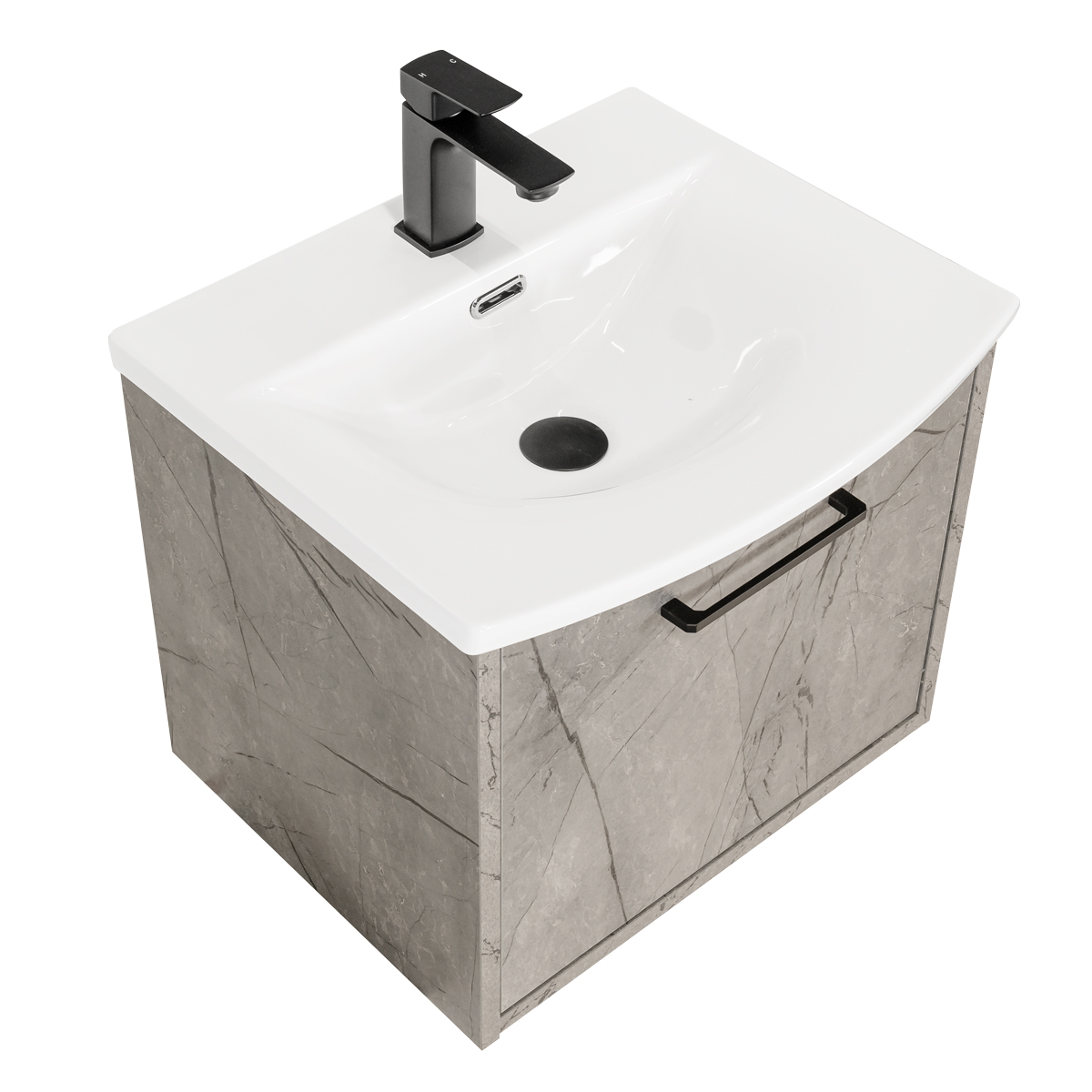 Josef Martin Urbano 500mm Space Saver Wall Mounted 1 Drawer Vanity Unit & Modern Curved Inset Basin - Marble Grey Grey