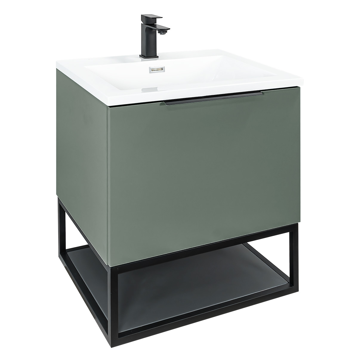 Josef Martin Viso 600mm Wall Mounted Flat Vanity Unit & Inset Basin with Black Frame - Spring Green