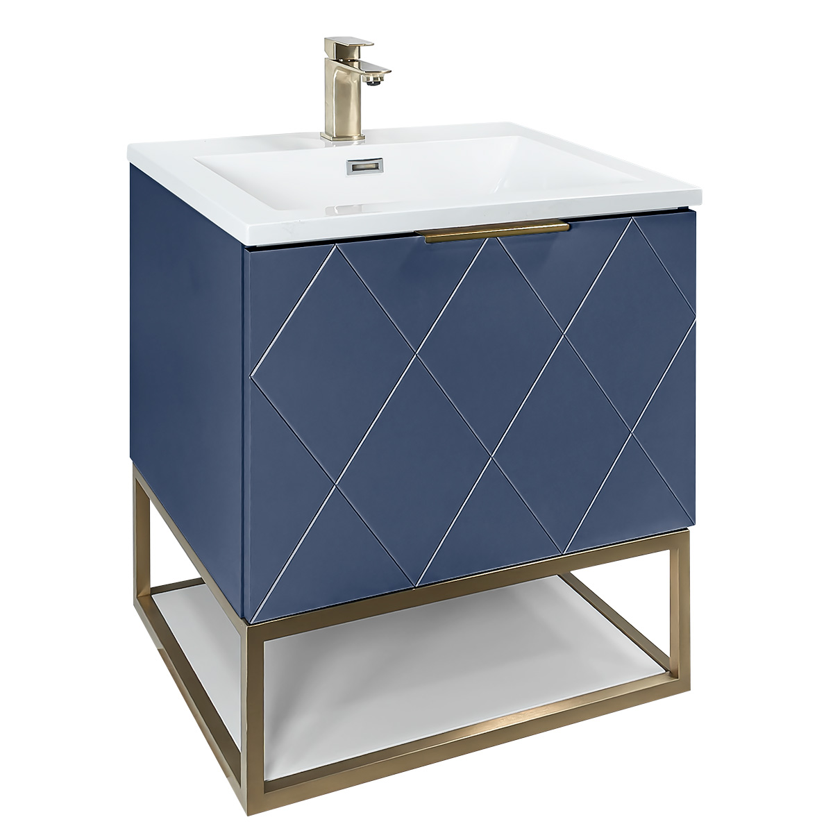 Josef Martin Viso 600mm Wall Mounted Harlequin Vanity Unit & Inset Basin with Brushed Brass Frame - Marine Blue