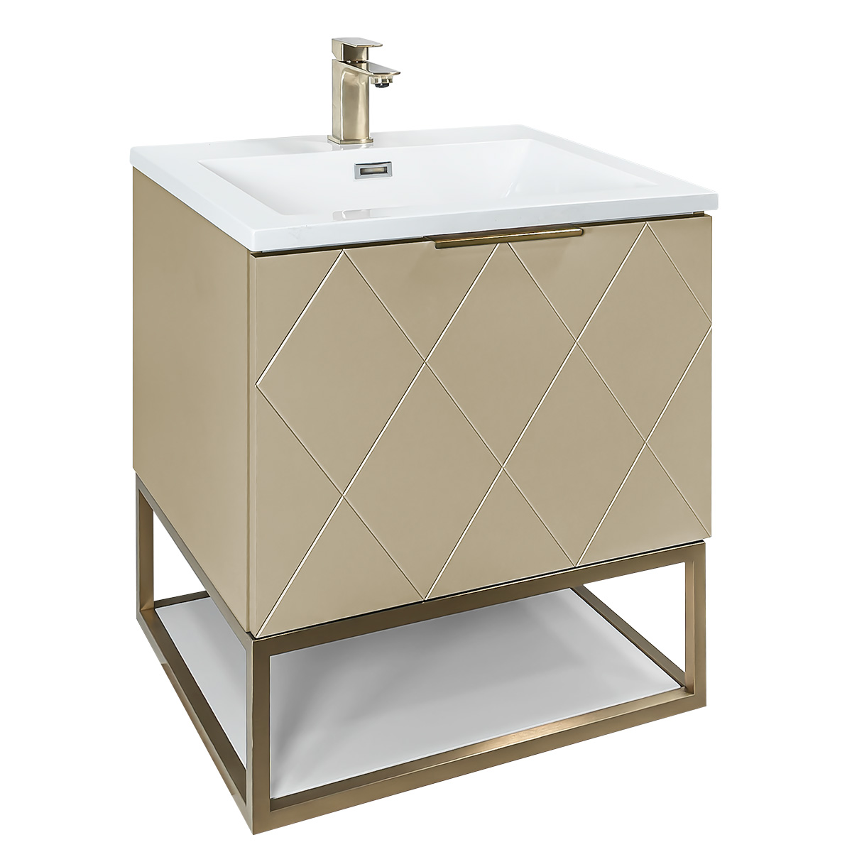 Josef Martin Viso 600mm Wall Mounted Harlequin Vanity Unit & Inset Basin with Brushed Brass Frame - Sand