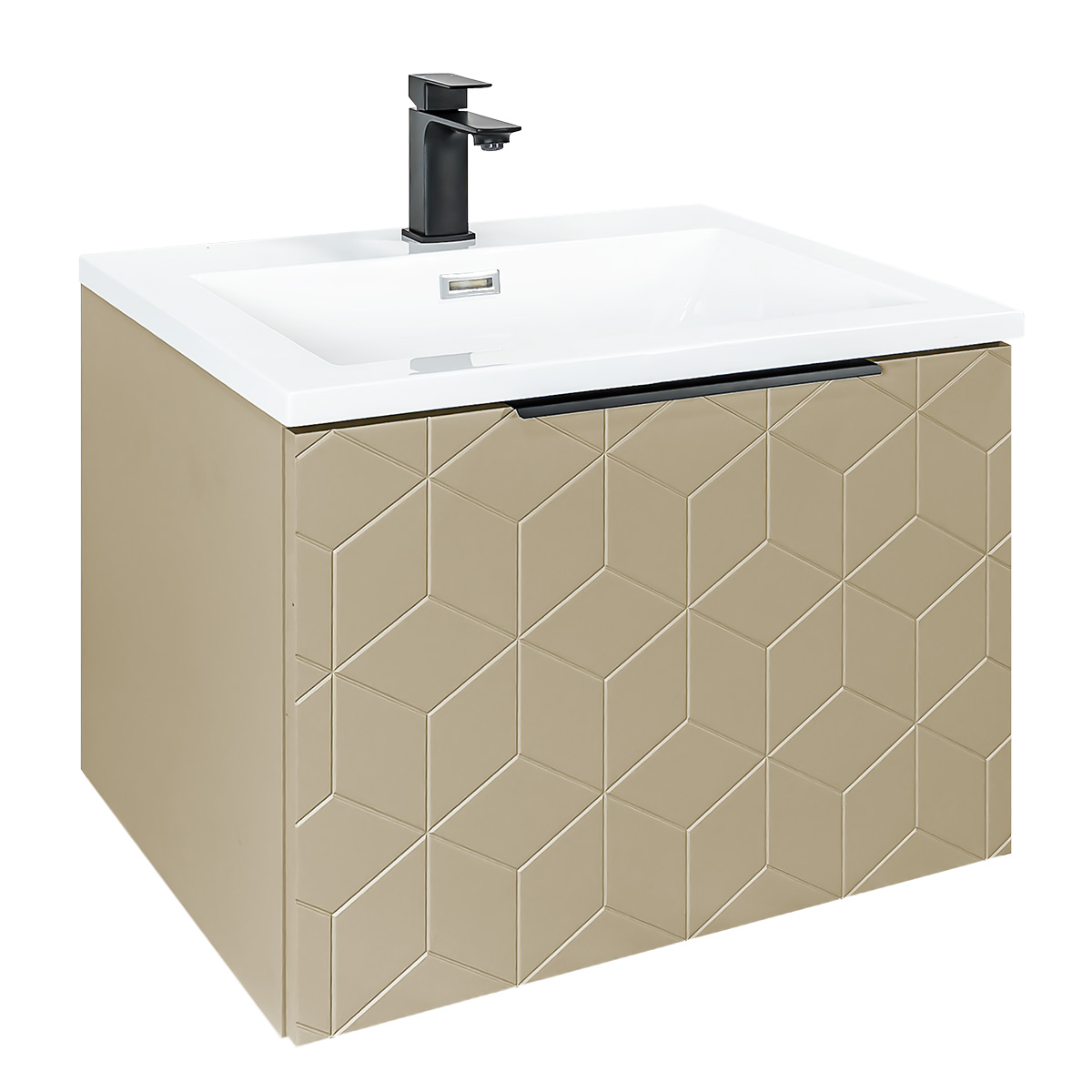 Josef Martin Viso 600mm Wall Mounted Prism Vanity Unit & Inset Basin - Sand