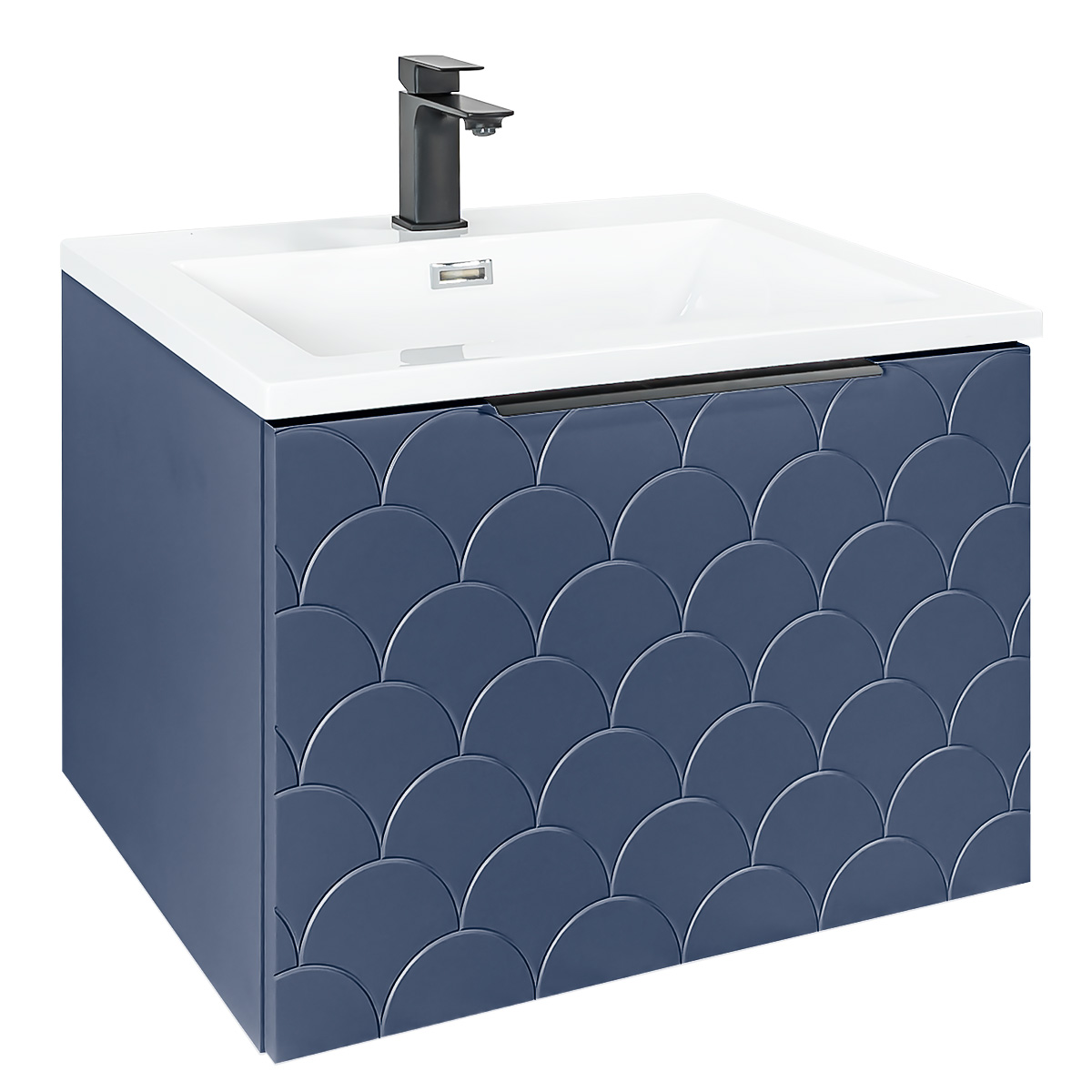 Josef Martin Viso 600mm Wall Mounted Scallop Vanity Unit & Inset Basin - Marine Blue