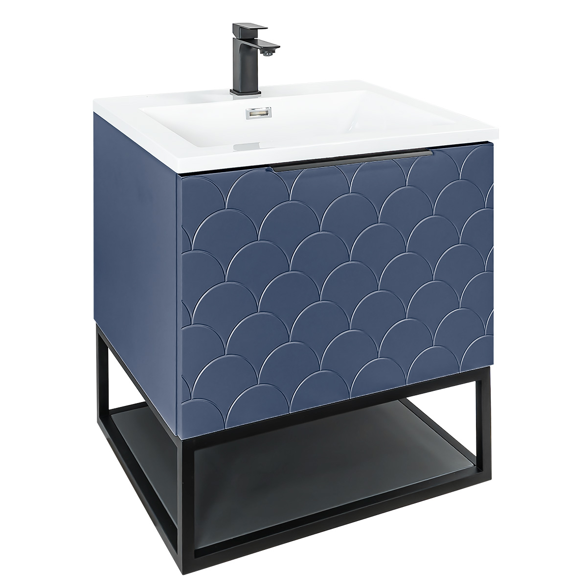 Josef Martin Viso 600mm Wall Mounted Scallop Vanity Unit & Inset Basin with Black Frame - Marine Blue