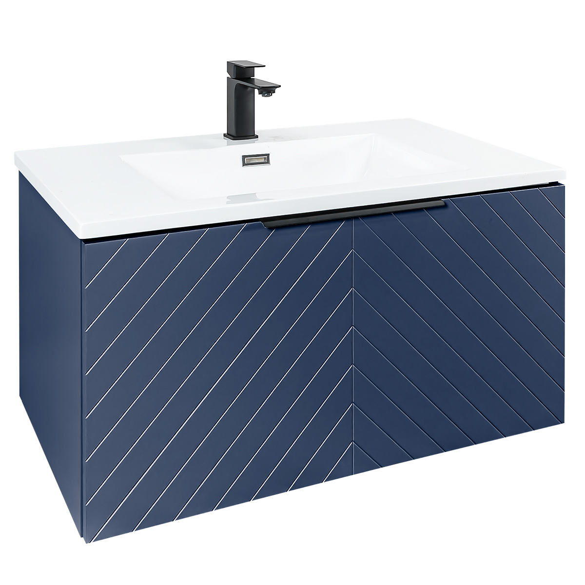 Josef Martin Viso 800mm Wall Mounted Chevron Vanity Unit & Inset Basin - Marine Blue