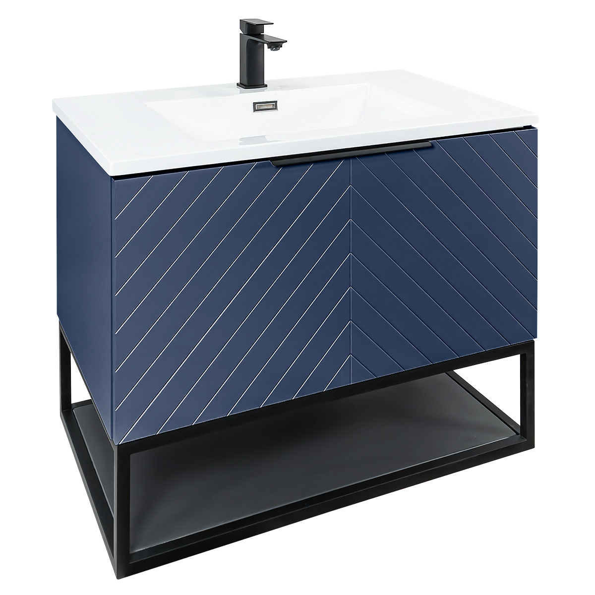 Josef Martin Viso 800mm Wall Mounted Chevron Vanity Unit & Inset Basin with Black Frame - Marine Blue