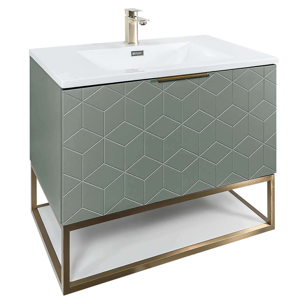 Josef Martin Viso 800mm Wall Mounted Prism Vanity Unit & Inset Basin with Brushed Brass Frame - Spring Green