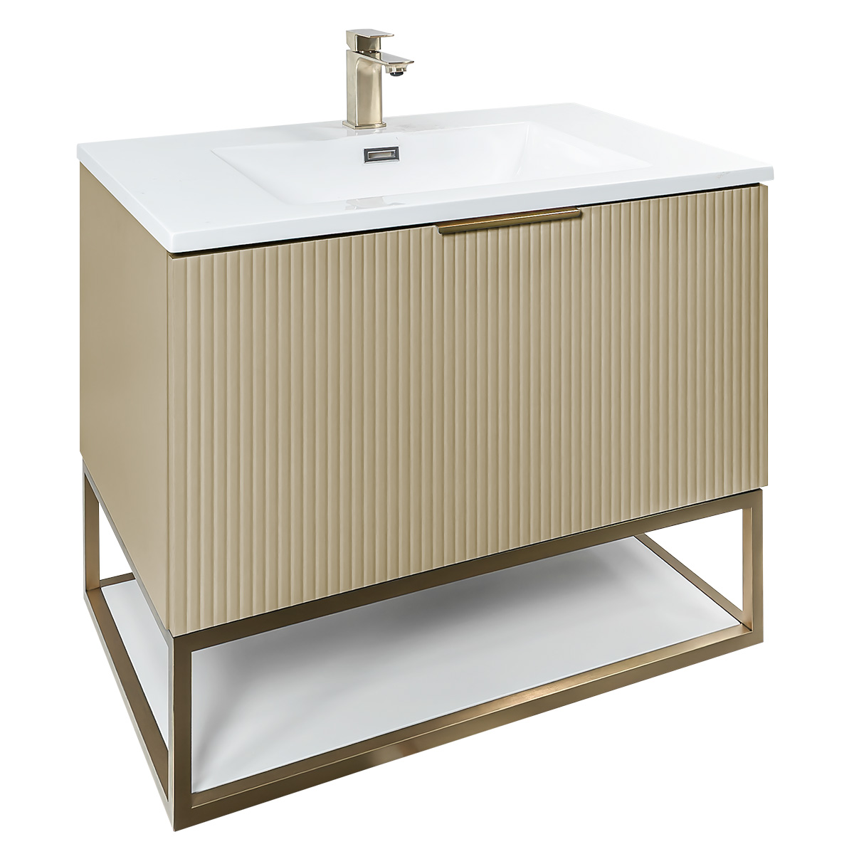Josef Martin Viso 800mm Wall Mounted Reeded Vanity Unit & Inset Basin with Brushed Brass Frame - Sand