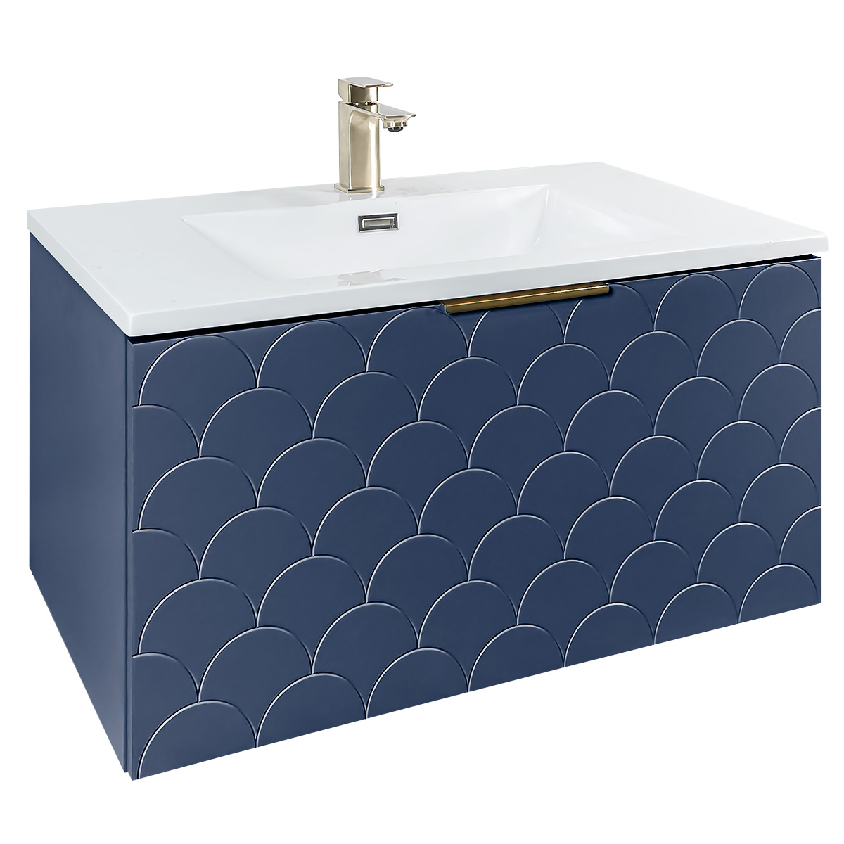 Josef Martin Viso 800mm Wall Mounted Scallop Vanity Unit & Inset Basin - Marine Blue