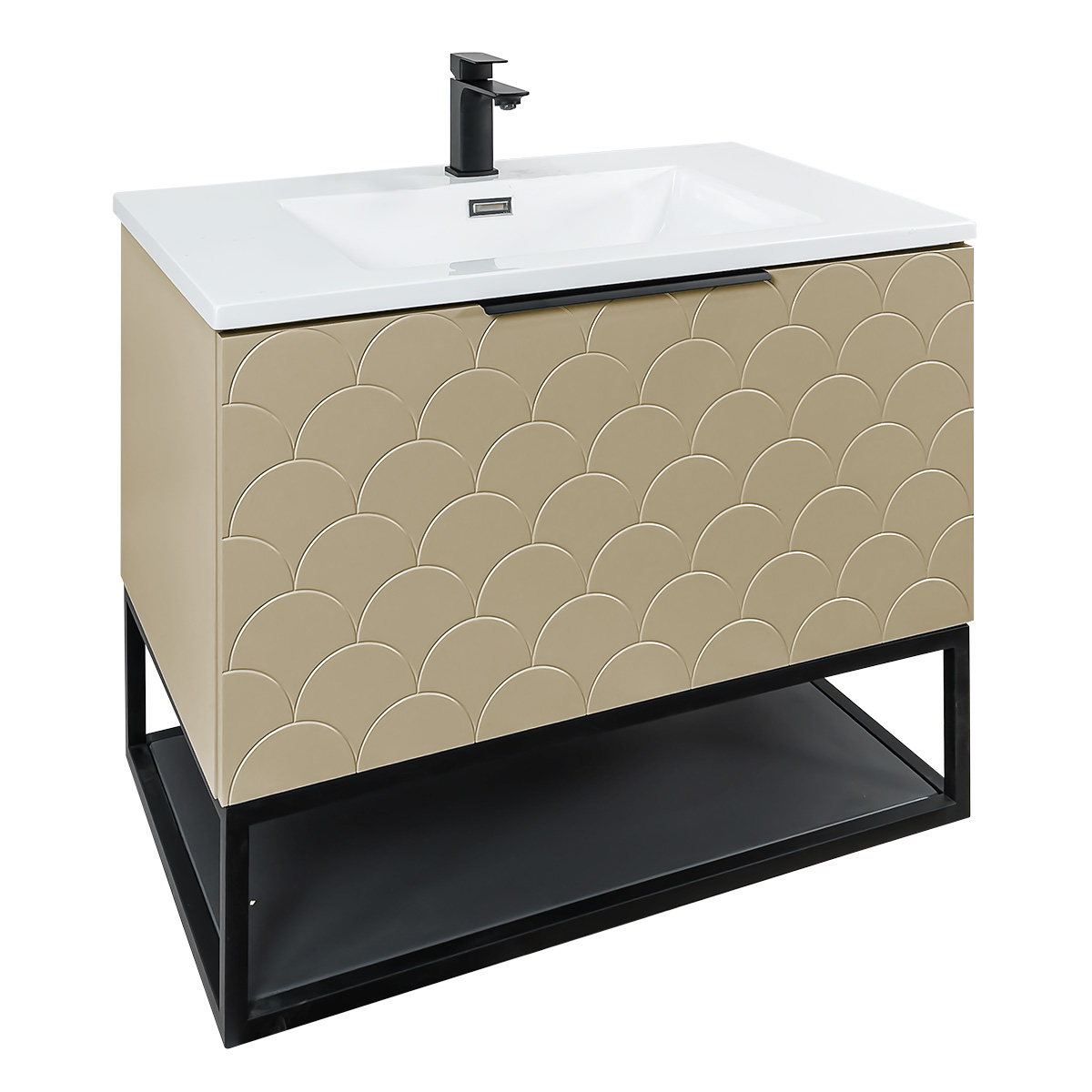 Josef Martin Viso 800mm Wall Mounted Scallop Vanity Unit & Inset Basin with Black Frame - Sand