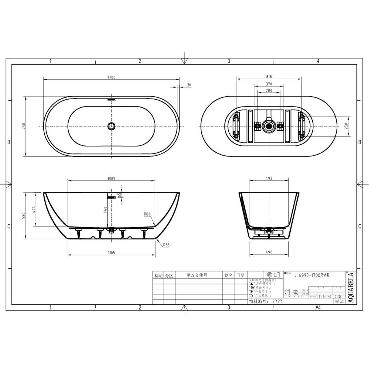 Viktor Benson Garda 1700 x 750mm Freestanding Double Ended Bath - Slim Overflow & White Waste