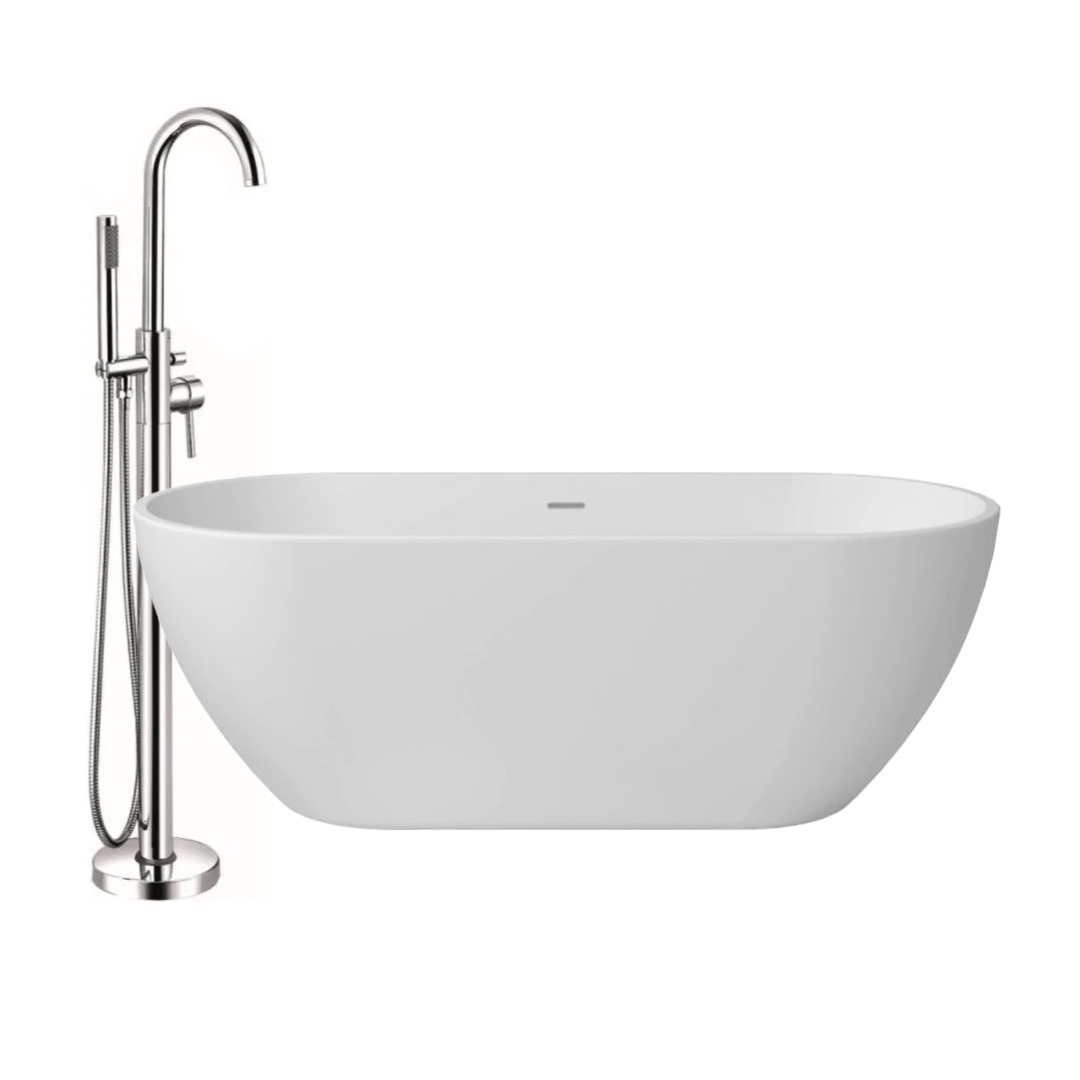 Viktor Benson Garda Free Standing Bath With Curve Floor Standing Bath Shower Mixer